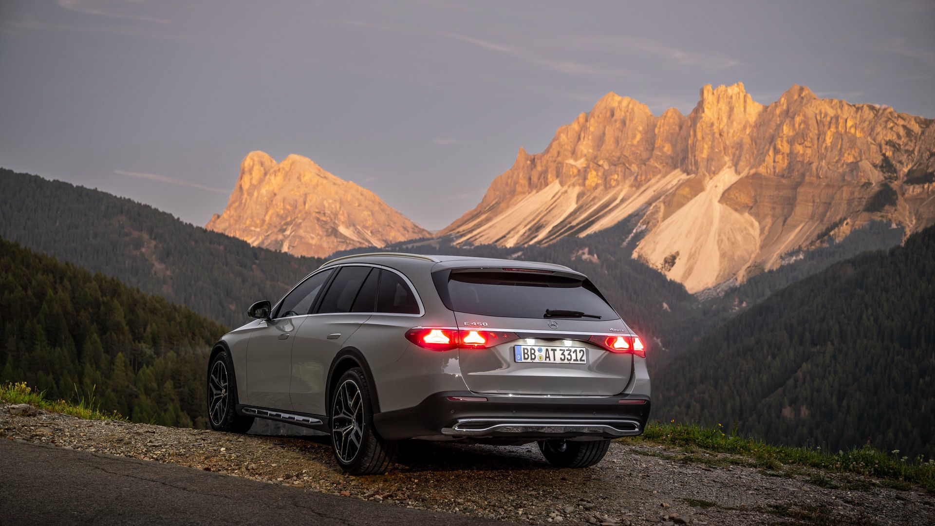 Des garnitures de passages de roue gris foncé et des plaques de protection chromées à l'avant et à l'arrière protègent la carrosserie des roches, des débris et des broussailles. Le design unique de la calandre distingue l'All-Terrain des autres modèles de la Classe E, tandis que des jantes de 19 pouces sont offertes de série (des jantes de 20 pouces sont disponibles en option). Ces éléments visuels ont une fonction précise : les panneaux protecteurs protègent les zones vulnérables lors de la conduite sur des surfaces non pavées.