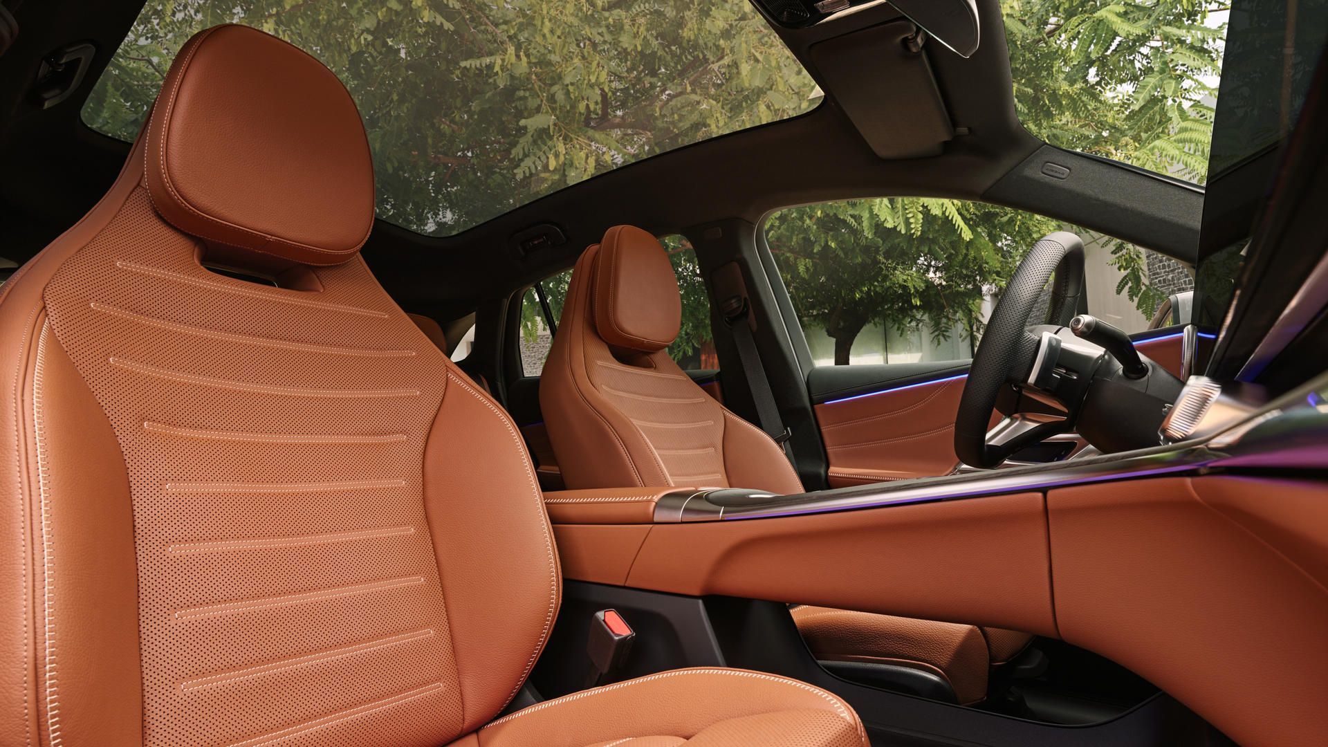 Les passagers avant gagneront 13 mm d'espace pour les jambes et 46 mm de garde au toit par rapport au GLC actuel. Les passagers arrière bénéficieront de 48 mm d'espace supplémentaire pour les jambes et de 18 mm de garde au toit. Le volume de chargement atteint 571 litres derrière les sièges arrière, passant à 1 739 litres une fois les sièges rabattus. Un espace de rangement supplémentaire de 127 litres se trouve dans le coffre avant (frunk), accessible en touchant l'étoile Mercedes-Benz sur le capot.